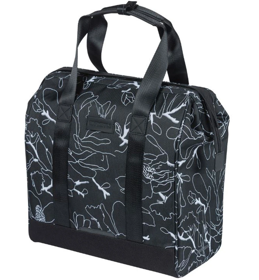 Mit dem Basil Grand Fahrradshopper wird das Erledigen von Einkäufen zu einem Fest. Der Shopper sieht wegen seiner schwarzen Farbe und blumigem Muster schön modisch und luxuriös aus. Er ist außerdem aus wasserabweisendem 600D Polyester hergestellt und hat ein großes Hauptfach mit gepolstertem (Laptop-)Fach. Das ist für dein Studium an der Universität oder für deine Büroarbeit sehr praktisch. Mit einem Fassungsvolumen von 23 Litern bietet er dir auch den Platz für nötige Einkäufe oder andere Dinge. Die Tasche ist formfest. Dank ihrer Größe kannst du dort auch Getränkepackungen ohne Probleme stehend verstauen.