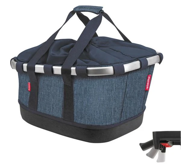 Leichter, längs orientierter Stoffkorb für Gepäckträger mit stabilem Thermoform Boden und flexiblen Tragegurten. Die klassische, nach vorne abfallende Korbform schafft Platz für den Sattel und Bewegungsfreiheit für den Radler. Ein Kordelzug schützt den Inhalt vor dem Herausspringen, ein Reißverschlussfach im Inneren bietet Platz für Schlüssel und Wertsachen. Die Versteifungselemente lassen sich herausnehmen, so dass der Korb flach und platzsparend verstaut werden kann. Belastbar bis max. 10 kg.